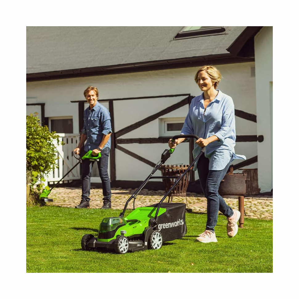 Идеальный выбор для владельцев загородных домов и дачных участков, которые ищут маневренную, тихую и мощную альтернативу бензиновым и сетевым газонокосилкам. Модель совместима с экосистемой аккумуляторных инструментов Greenworks 24V, что позволяет использовать один набор АКБ для различной садовой техники.