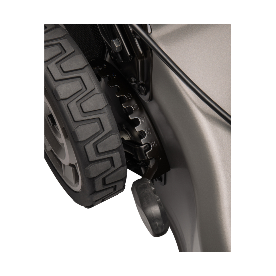 - Гибкая настройка - восемь позиций регулировки высоты скашивания в широком диапазоне от 20 до 100 мм дают полный контроль над состоянием газона - от спортивного короткого покрытия до высокой декоративной травы.