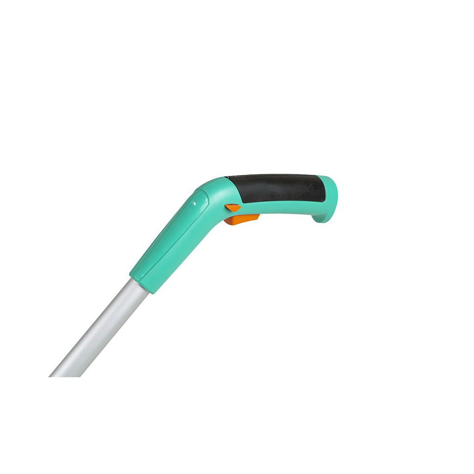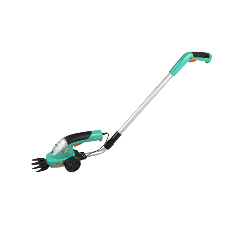 3. Телескопическая рукоятка позволяет регулировать длину инструмента под ваш рост, а наличие специальных колес делает перемещение кустореза вдоль живой изгороди плавным и легким, исключая необходимость прикладывать дополнительные физические усилия.