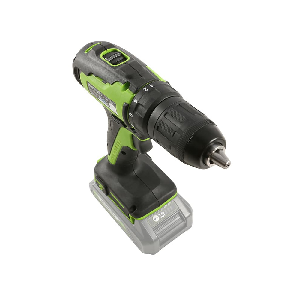 - Модель совместима со всей линейкой аккумуляторов Greenworks 24V и оснащена надежным быстрозажимным патроном на 13 мм.