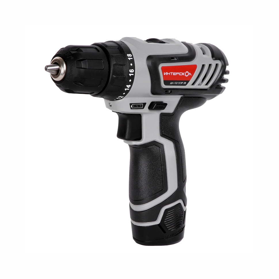 Характеристики Шуруповерт Интерскол ДА-10/12ЭР 28 Li-ion (12В, 28Нм, 2x2Ач, ЗУ, экокейс) 595.2.2.20
