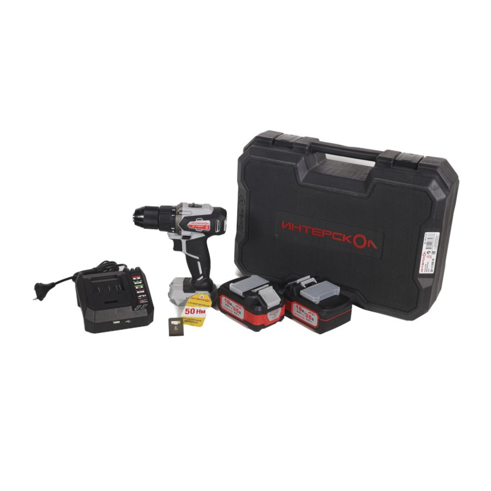 Характеристики Шуруповерт Интерскол ДА-13/36В 50 АПИ (кейс, АКБ 2*2Ач и ЗУ) 851.2.2.70