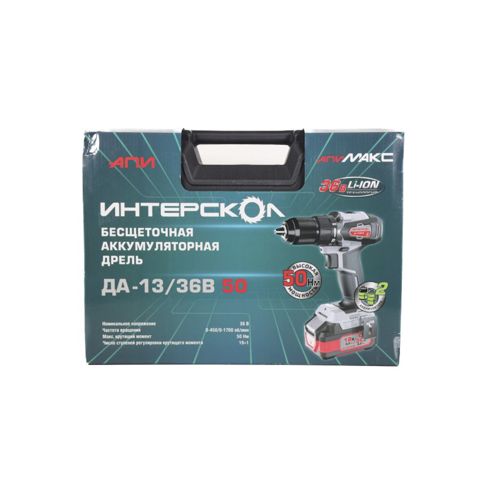 Преимущества Интерскол ДА-13/36В 50 (851.2.2.70):Обратите внимание: модель поставляется с 2 аккумуляторными батареями 36В 2 А/ч (АКБ) и зарядным устройством (ЗУ).