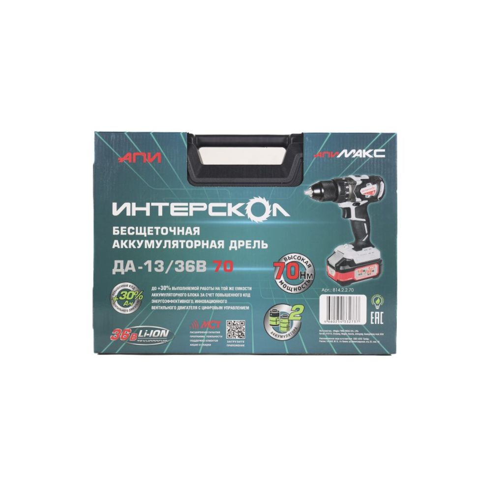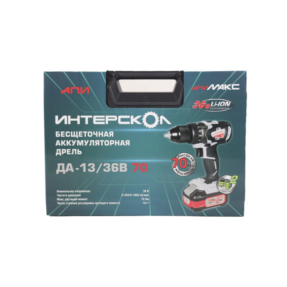 Характеристики Шуруповерт Интерскол ДА-13/36В 70 АПИ (кейс, АКБ 2*2Ач и ЗУ) 814.2.2.70
