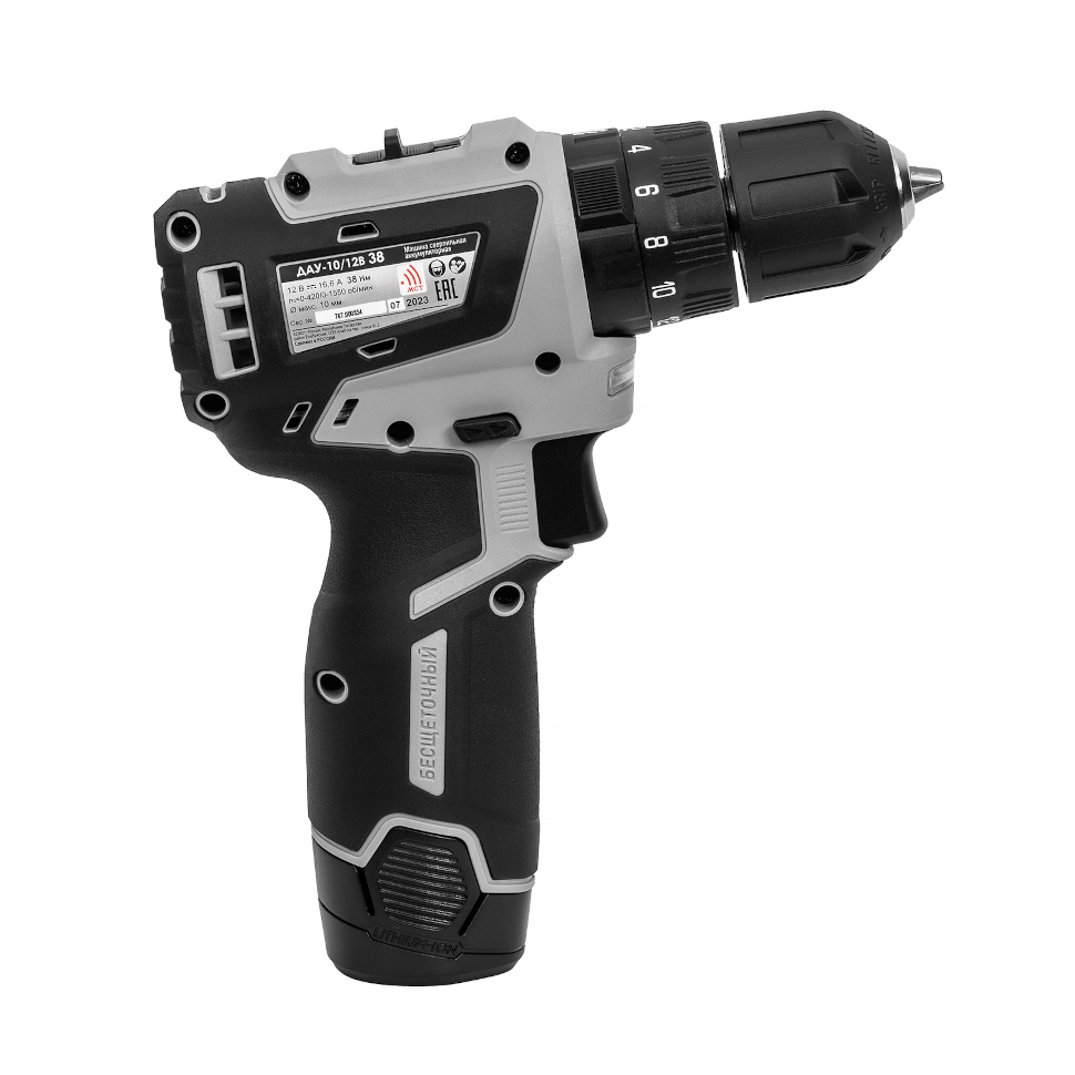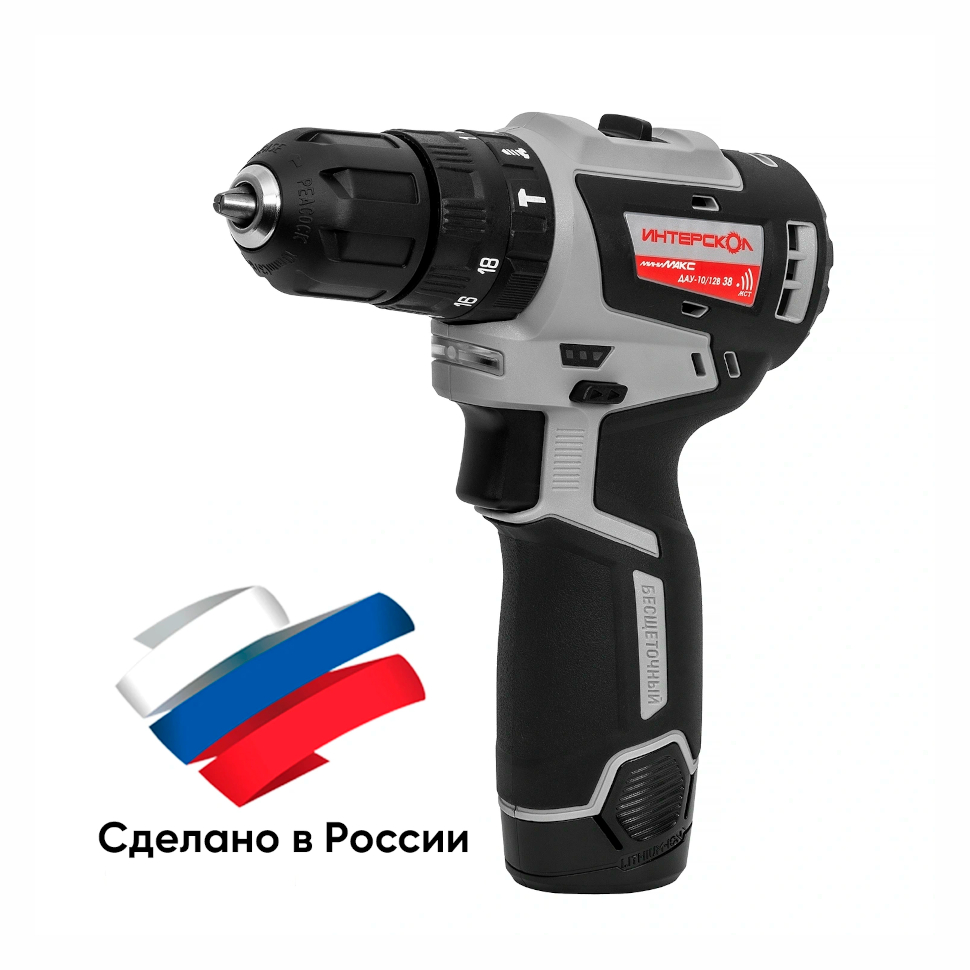 Компактная ударная дрель-шуруповерт Интерскол ДАУ-10/12В с бесщеточным двигателем оснащена: