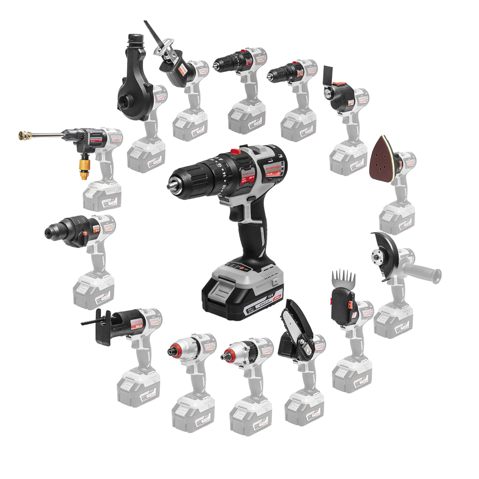 Бесщеточная ударная дрель-шуруповерт Интерскол ДАУ-10/18В 44 МультиМАКС18 с функцией удара демонстрирует совместимость со всей экосистемой МультиМАКС 18, позволяя создавать индивидуальные наборы для конкретных задач.