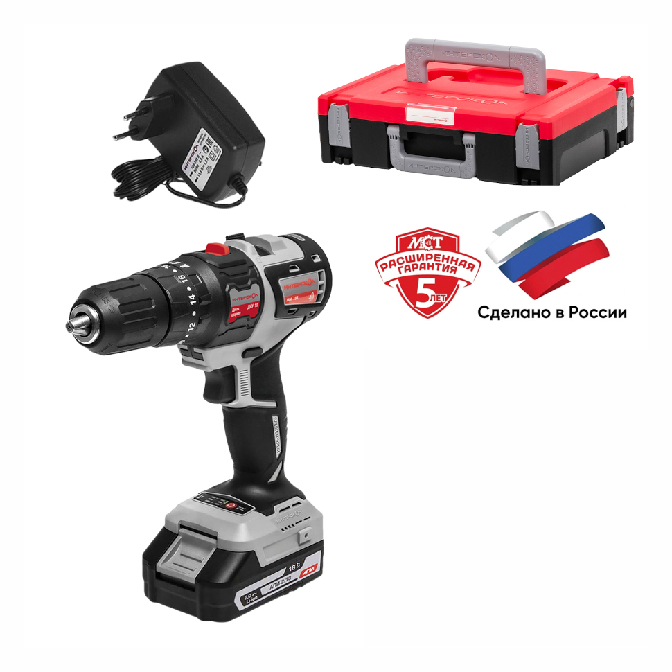 Характеристики Шуруповерт ударный Интерскол ДАУ-10/18В 44 Li-ion АПИ (18В, 2АКБx2Ач и ЗУ, МБ100) 755.2.2.47