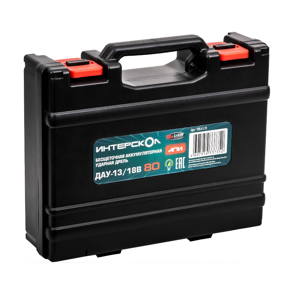 Характеристики Шуруповерт ударный Интерскол ДАУ-13/18В 80 Li-ion АПИ (кейс, АКБ 4Ач и ЗУ) 786.4.1.70