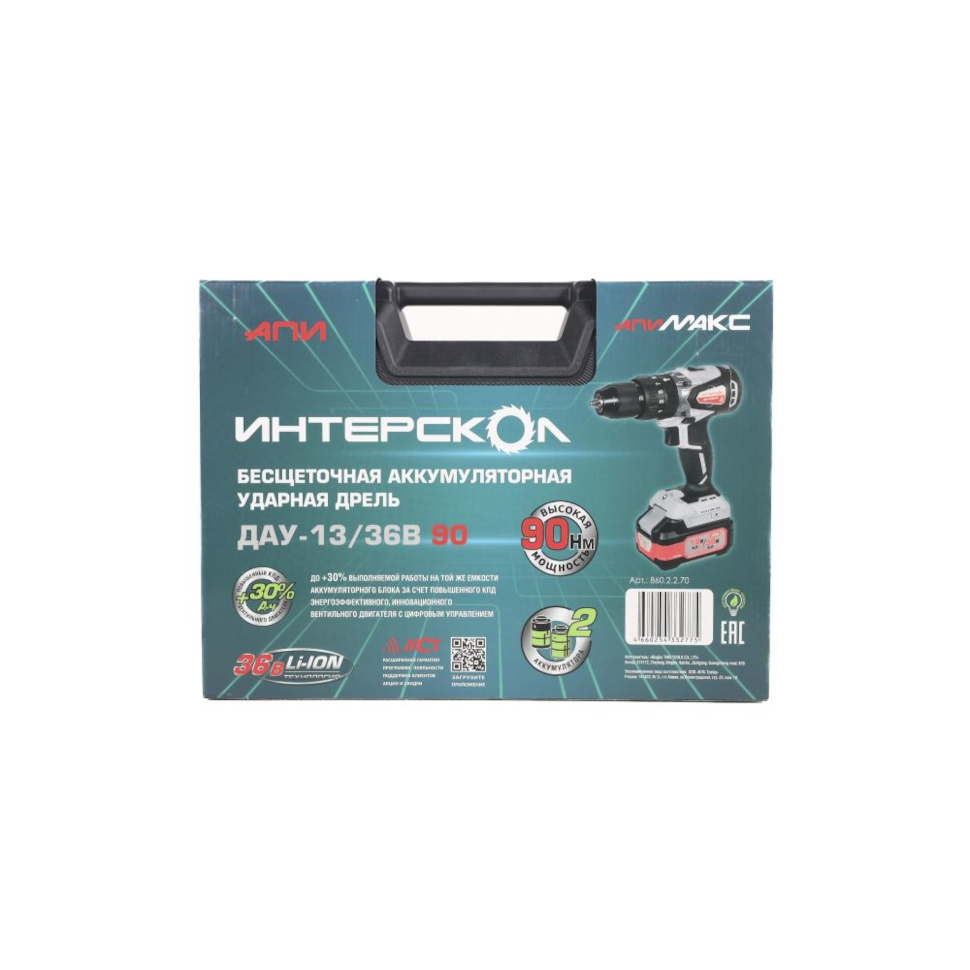 Характеристики Шуруповерт ударный Интерскол ДАУ-13/36В 90 АПИ (кейс, 2 аккум. 2,0Ач, ЗУ) 860.2.2.70