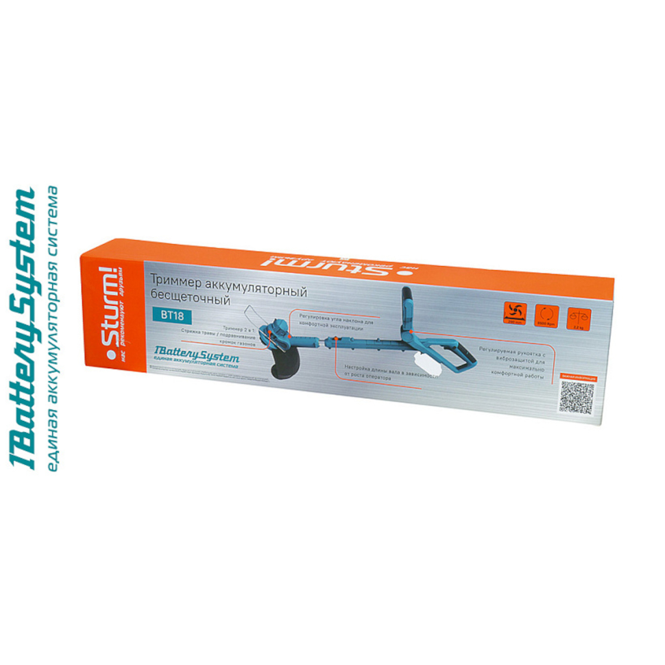 Характеристики Триммер аккумуляторный Sturm BT18 (1BatterySystem18V, АКБx2А/ч и ЗУ)
