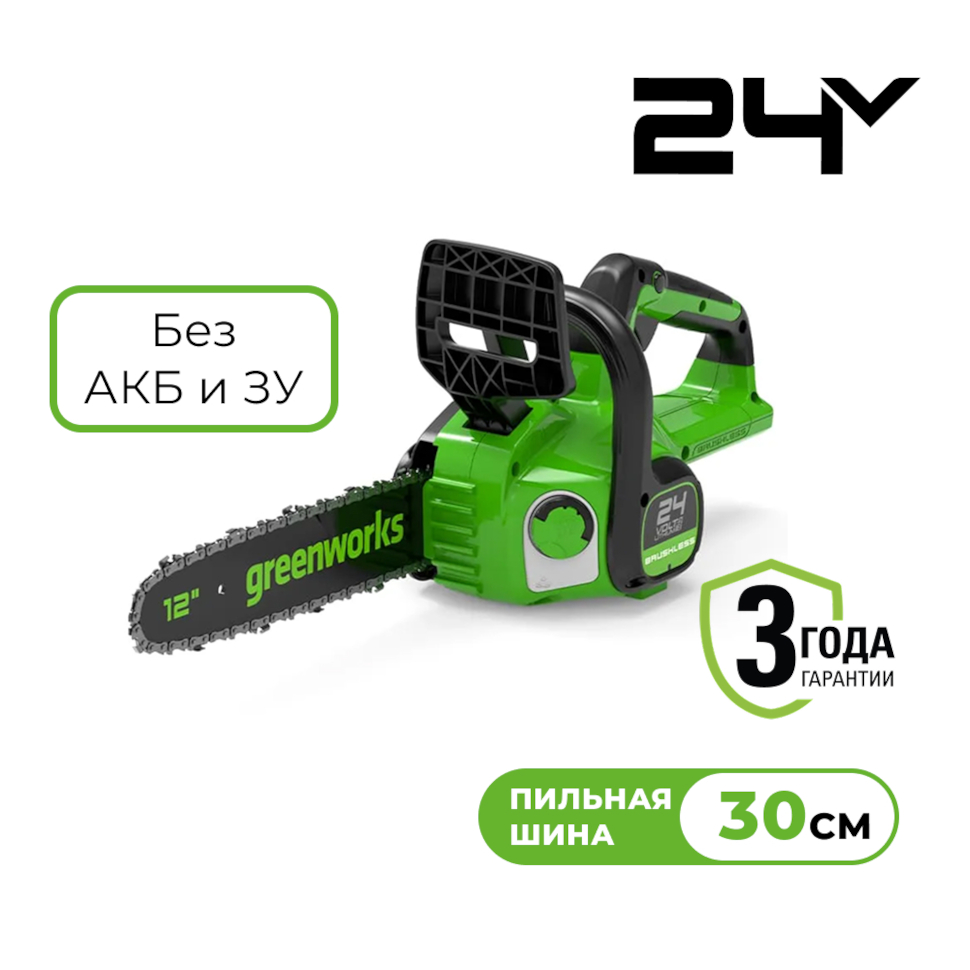 Характеристики Пила цепная аккумуляторная Greenworks GD24CS30 (без АКБ и ЗУ) 2007007