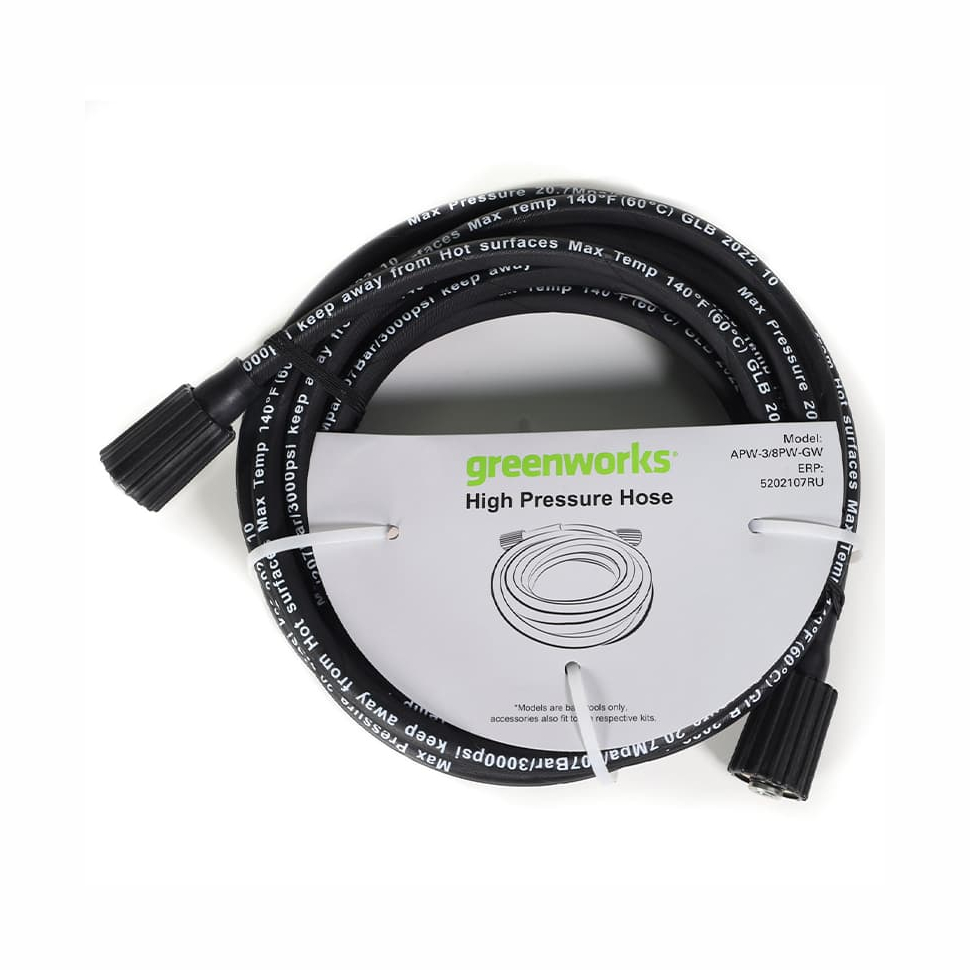 Характеристики Шланг для моек высокого давления GREENWORKS 7.6м, 310 бар (5202107)