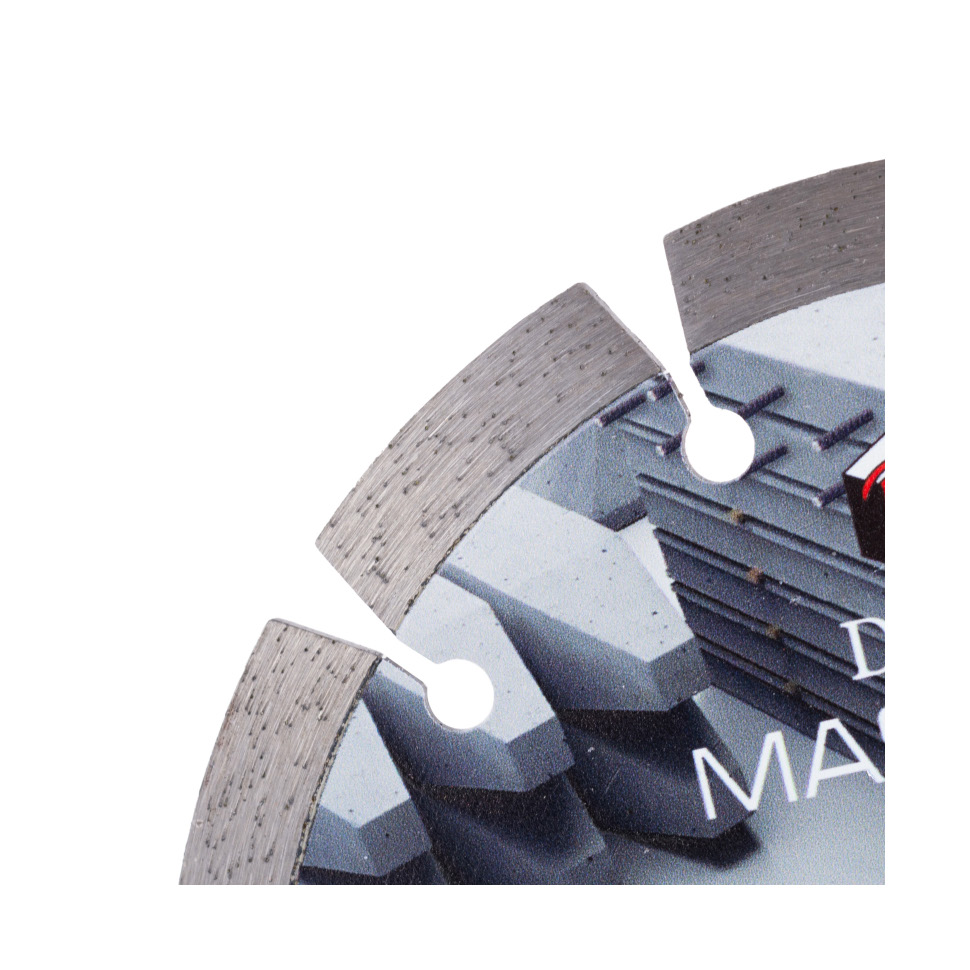Алмазный диск Диам Master Line "ЖЕЛЕЗОБЕТОН" 000499 применяется на таком оборудовании, как угловые шлифовальные машины (УШМ, болгарки) с рабочим диаметром диска 125 мм.