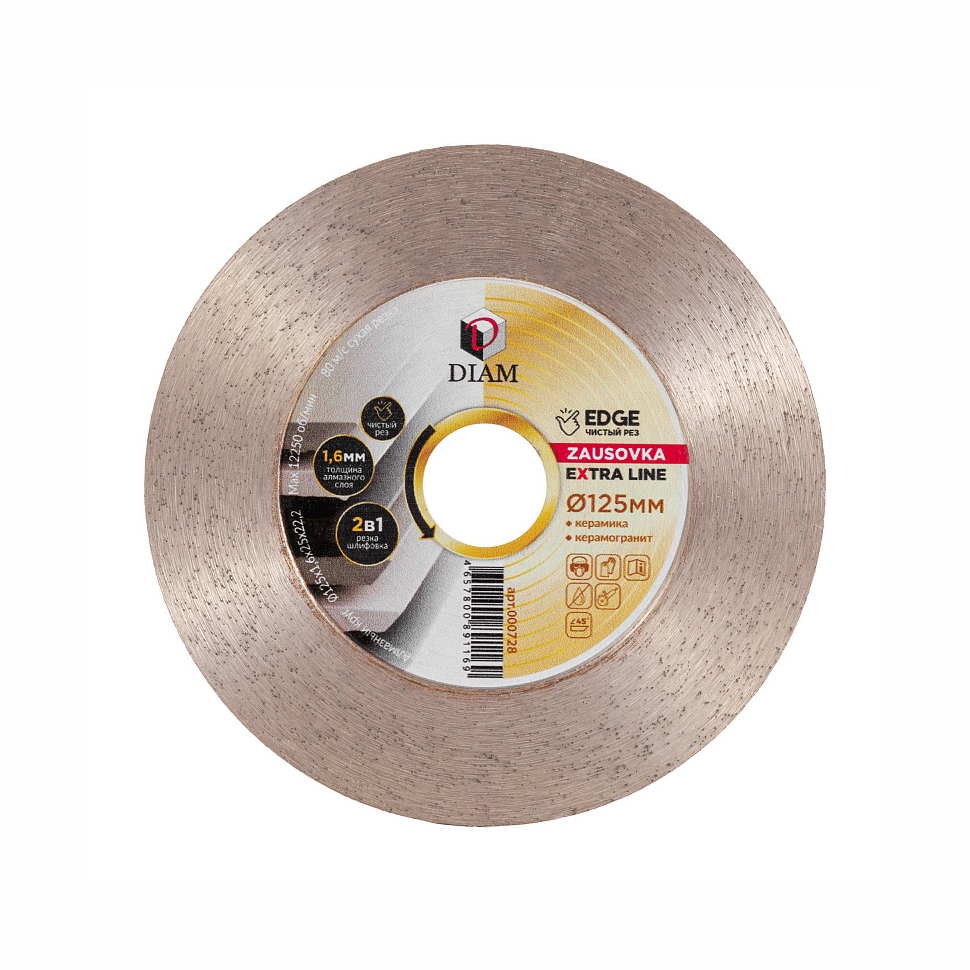 Преимущества диска для заусовки 125x1.6x25x22.2 (керамогранит) EDGE Extra Line ZAUSOVKA Diam (000728):Рекомендация: для достижения наилучшего результата используйте диск на оборудовании с возможностью точной регулировки угла и стабильными оборотами (специализированные УШМ для плитки или станки).