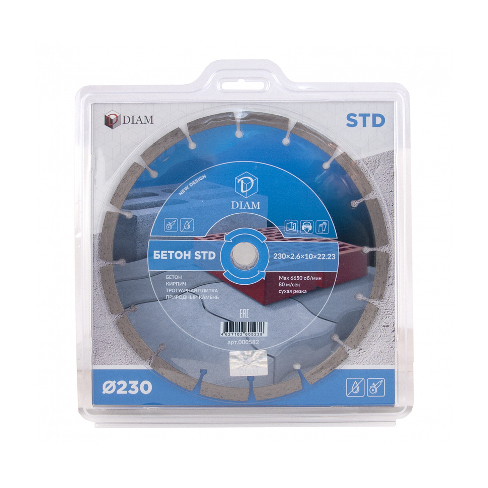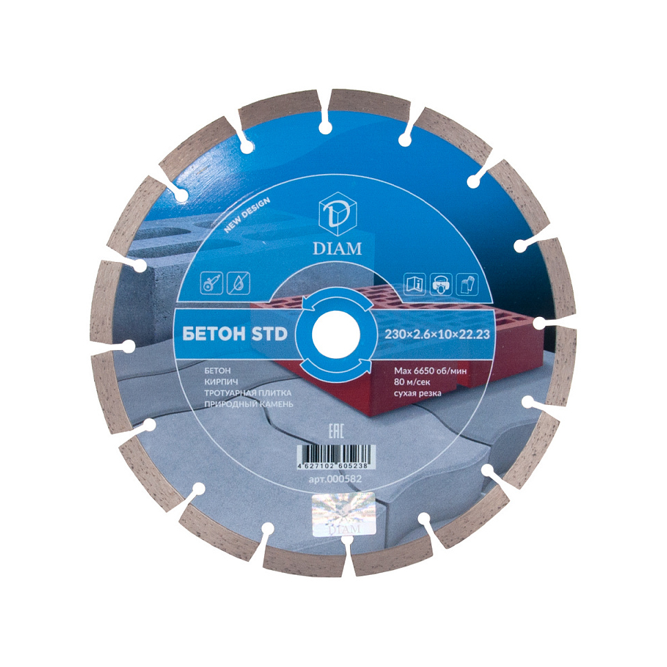 Характеристики Диск алмазный 230х2.6х10х22.2 (бетон) STD DIAM (000582)