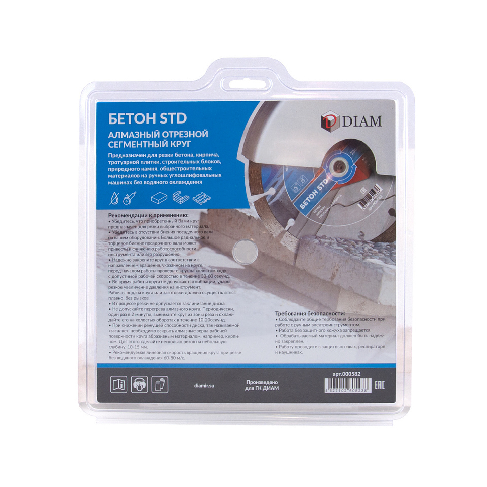 Алмазный диск для резки бетона Диам 000582 сохраняет стабильные режущие характеристики на протяжении всего периода эксплуатации, обеспечивая чистоту кромки и минимальное пылеобразование.