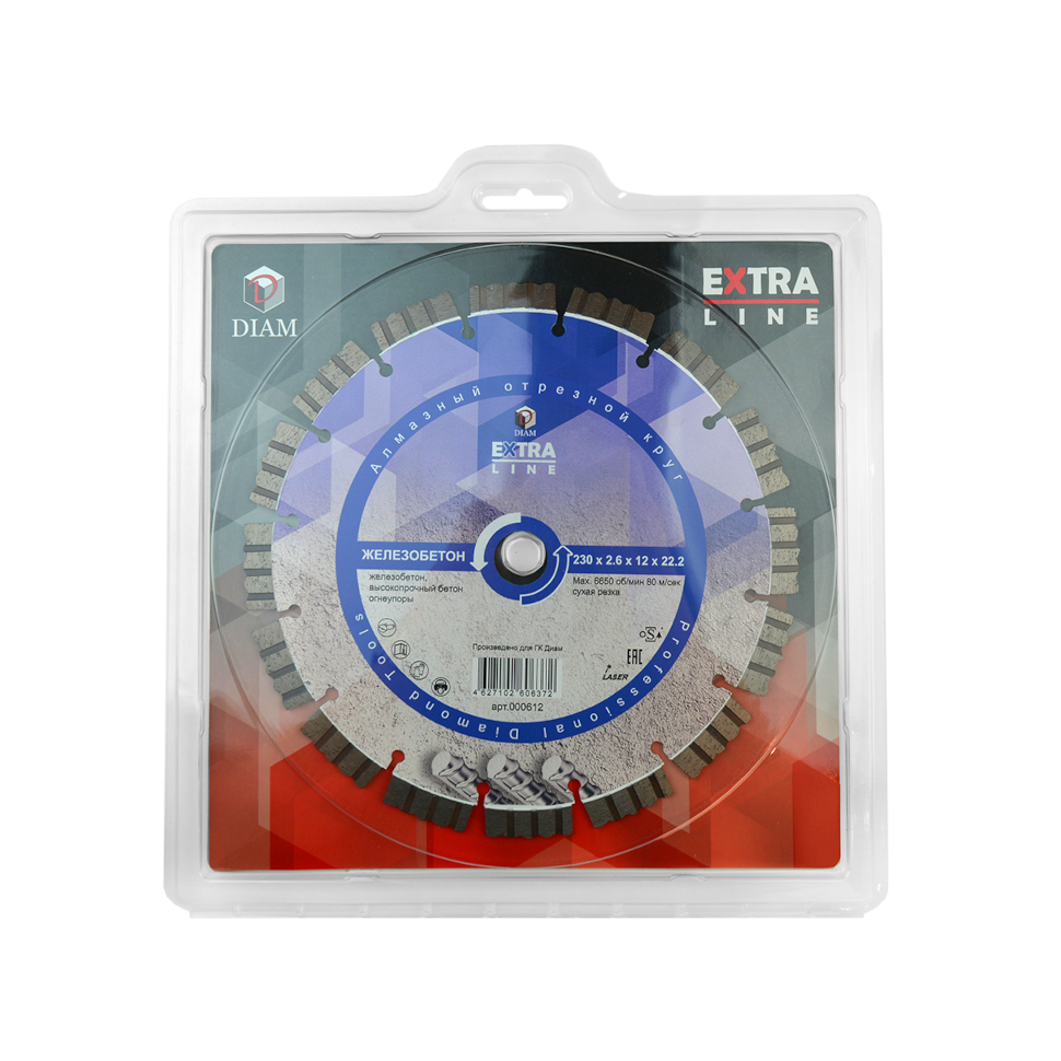 Характеристики Диск алмазный 230x2.6x12x22.2 (железобетон) DIAM Extra Line (000612)