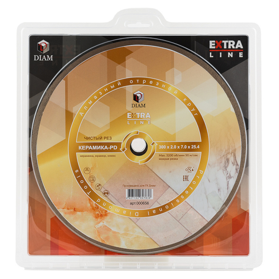Премиальный сплошной алмазный круг Диам диаметром 300 мм из серии Экстра - чистовой рез для керамики и мрамора - демонстрирует отличное качество реза для профессиональной обработки керамики, мрамора и оникса.