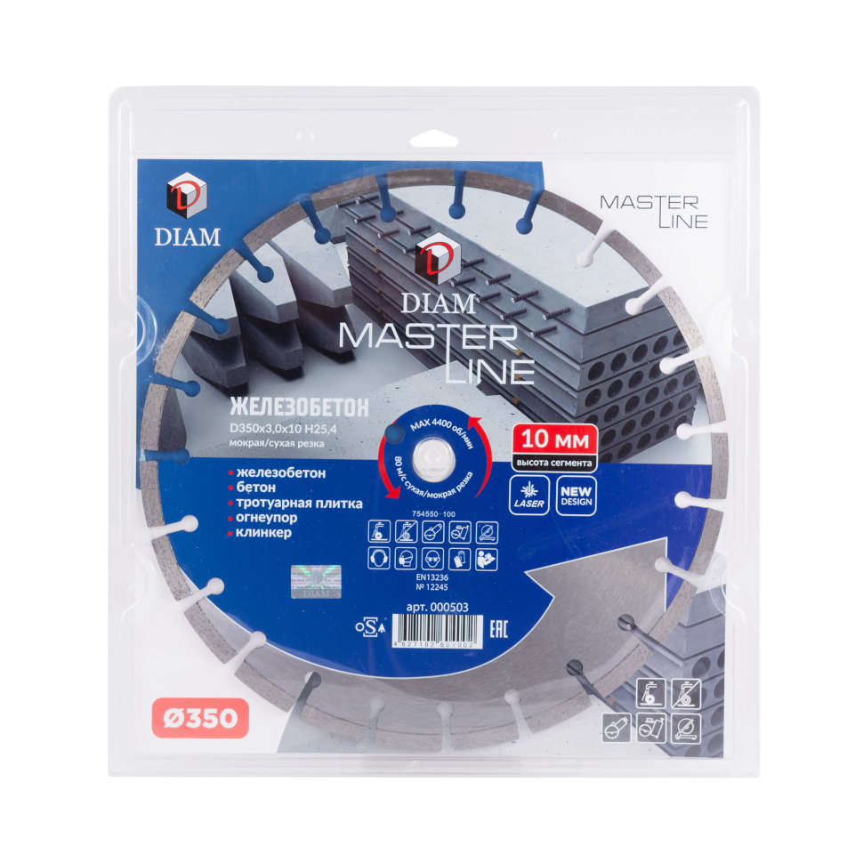 Характеристики Диск алмазный 350х3.0х10х25.4 (железобетон) Master Line DIAM (000503)