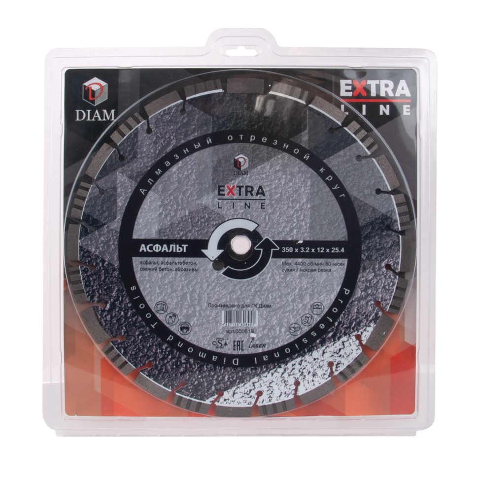 Характеристики Диск алмазный 350х3.2х12х25,4 (асфальт) Diam Extra Line (000619)