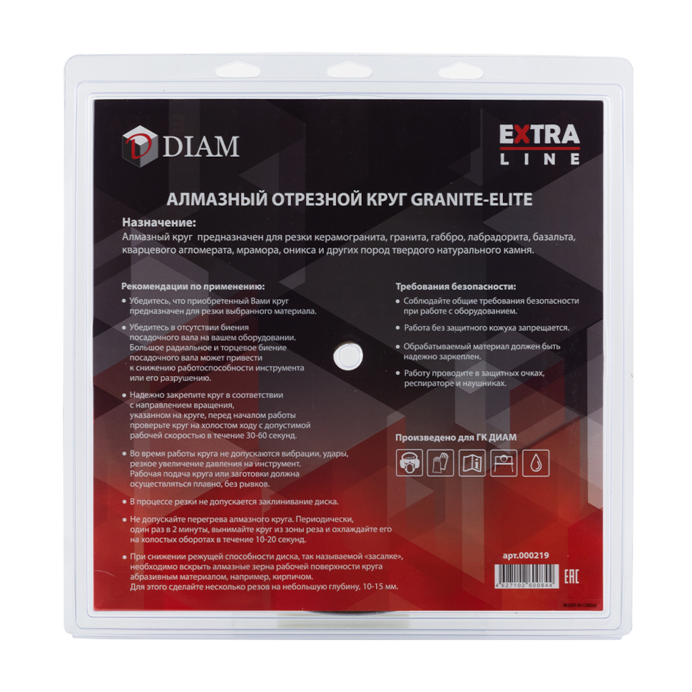 Алмазный диск Диам Extra Line "Granite-Elite" 000219 применяется на электрических камнерезных станках и профессиональных плиткорезах с системой орошения.