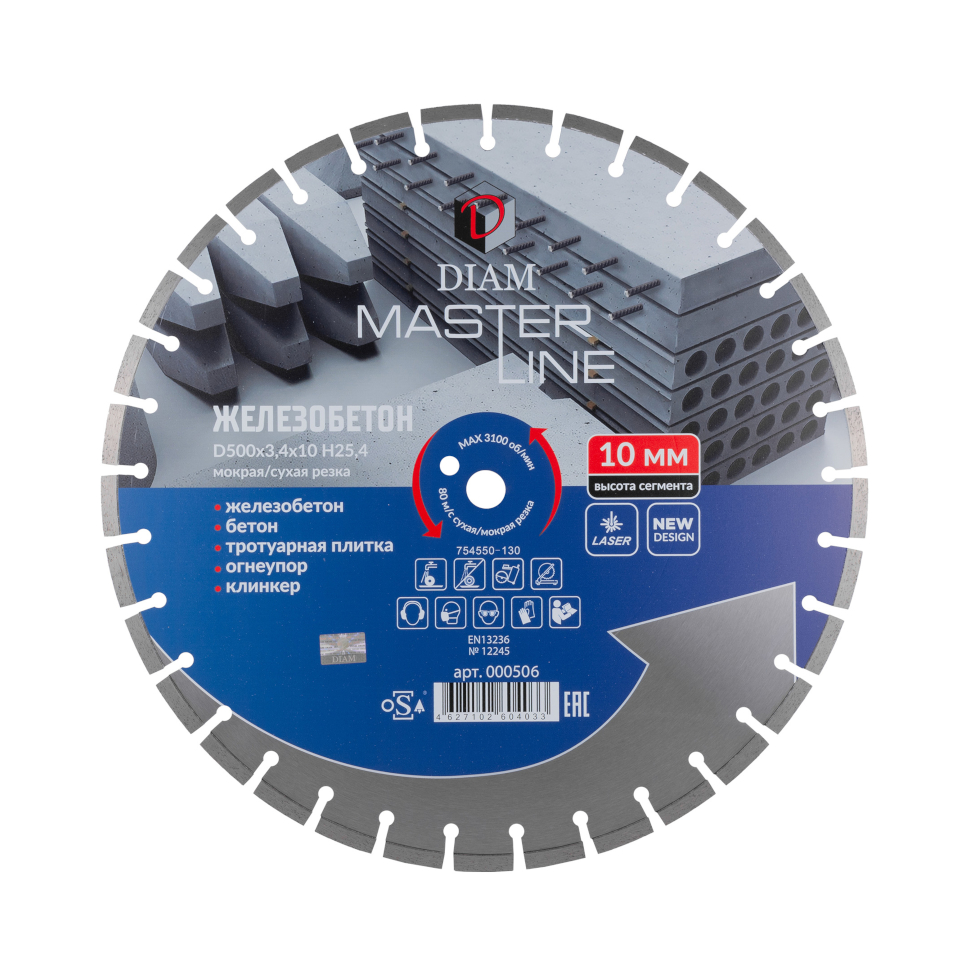 Характеристики Диск алмазный 500х3.4х10х25.4 (железобетон) Master Line DIAM (000506)