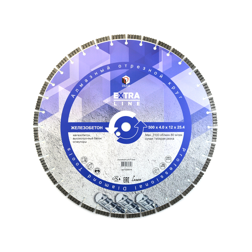 Характеристики Диск алмазный 500x4.0x12x25.4 (железобетон) DIAM Extra Line (000616)
