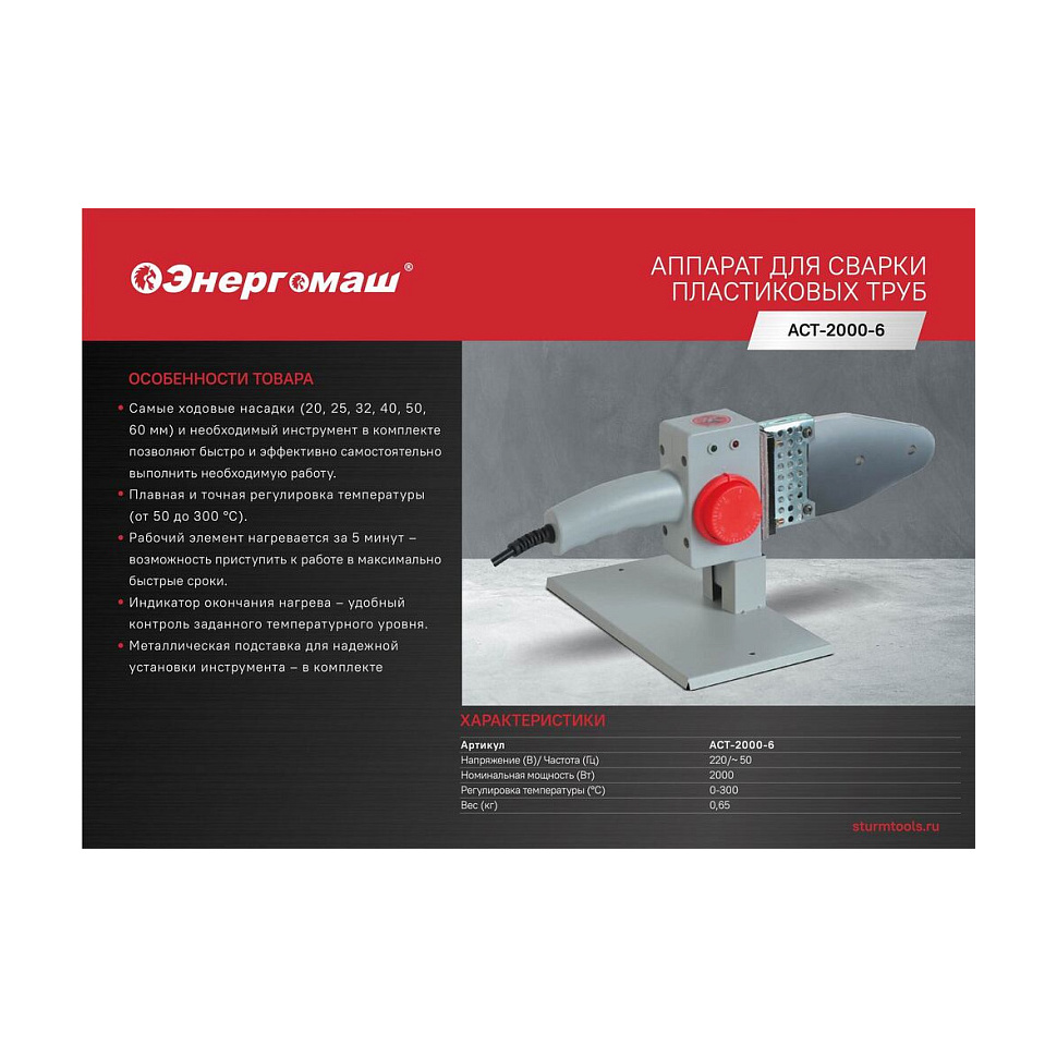 Характеристики Аппарат для сварки пластиковых труб Энергомаш АСТ-2000-6