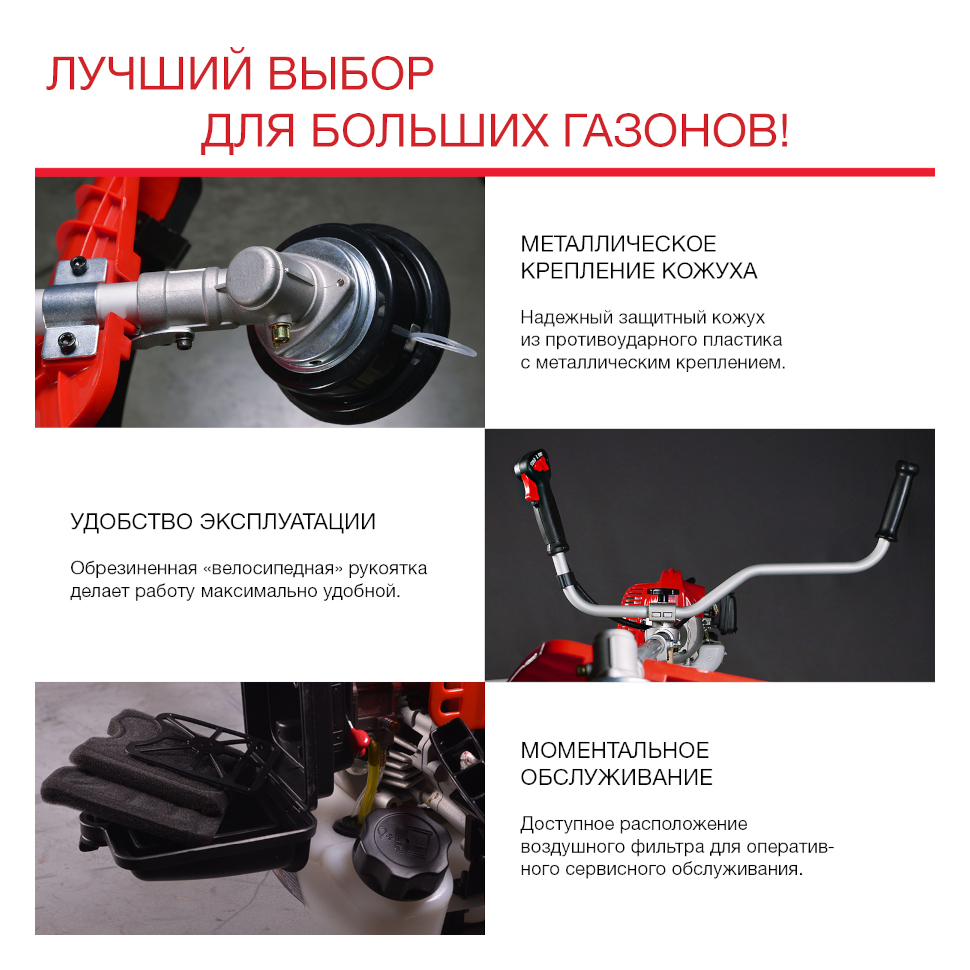 Особенности:Тип двигателя бензиновый одноцилиндровый 2х-тактный с воздушным охлаждением