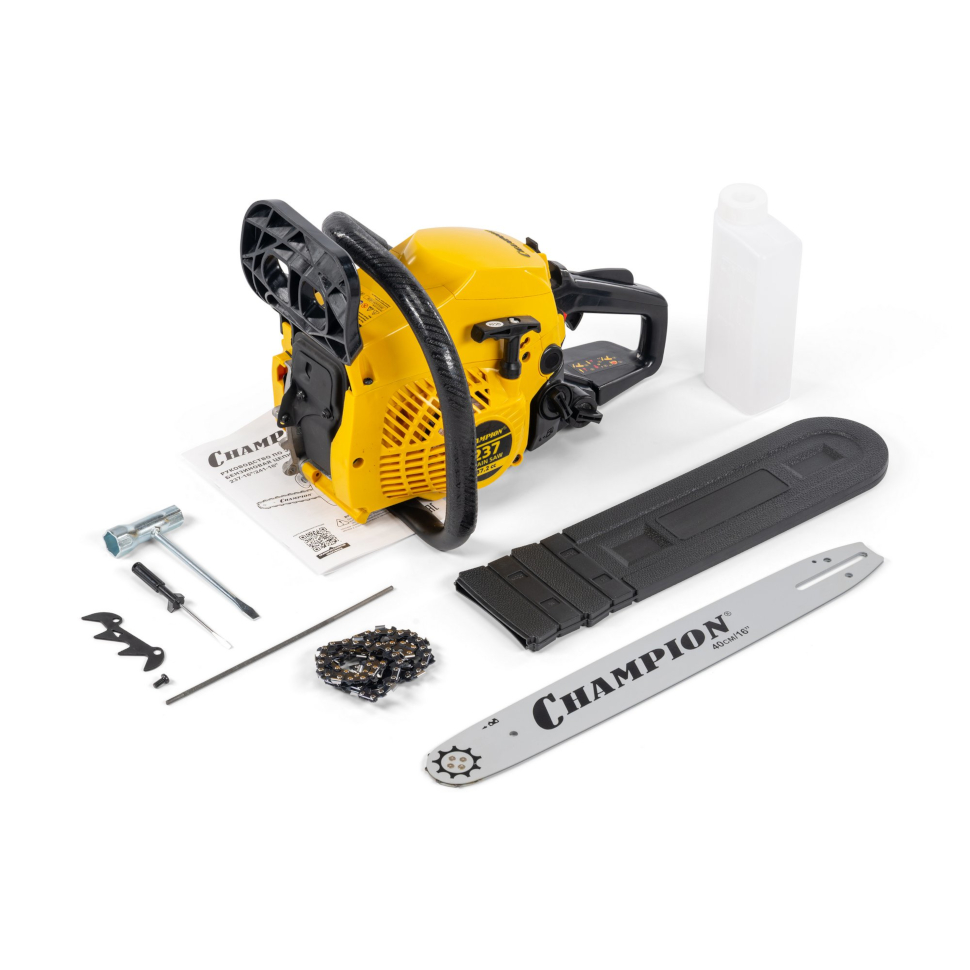 Преимущества Champion 237-16:Выбирайте надежность и сезонный комфорт для вашего участка - бензопилу Champion 237-16.