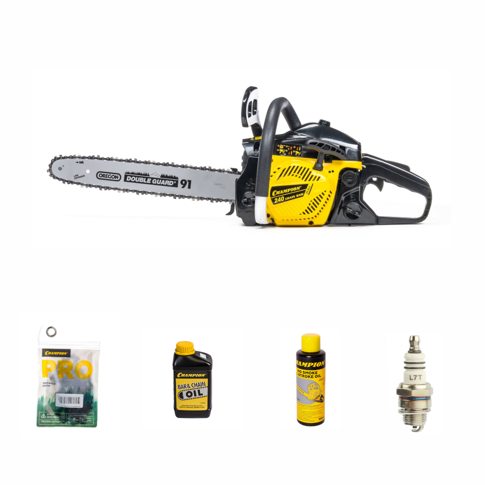 Преимущества Champion 240-16 (A240-16):Выбирайте удобство и надежный запуск для вашего участка - бензопилу Champion 240-16.