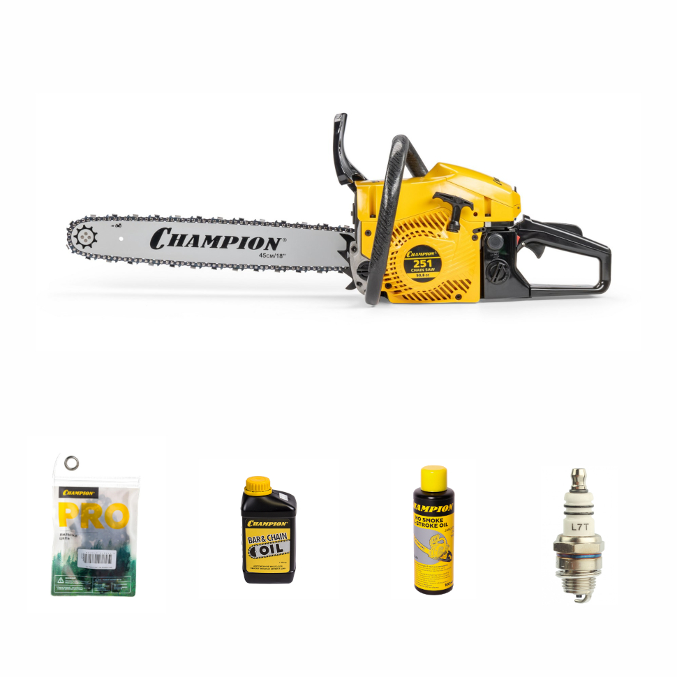 Характеристики Бензопила Champion 251-18 (A251-18) (промо набор: цепь, смазка, свеча, масло для цепи)