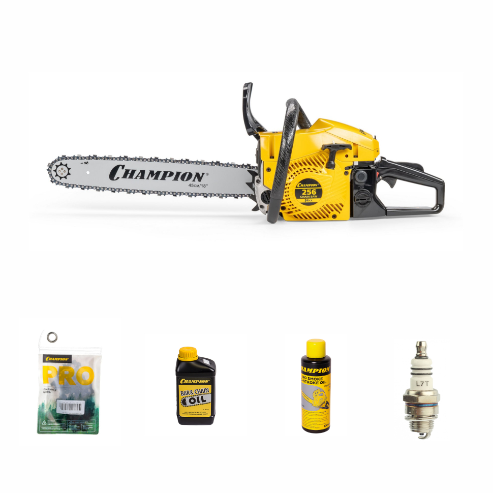 Характеристики Бензопила Champion 256-18 (A256-18) (промо набор: цепь, смазка, свеча, масло для цепи)