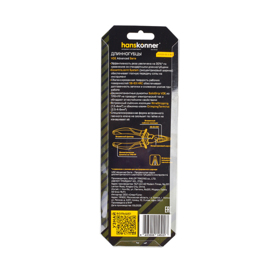 Преимущества длинногубцев Hanskonner (HK1020-03-3-160):