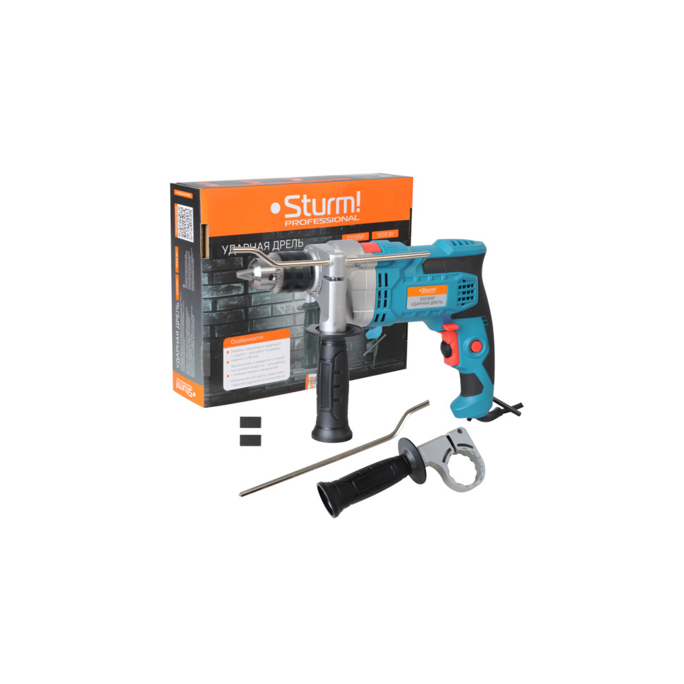 Дрель ударная Sturm ID2195P. Дополнительная рукоятка. Ограничитель глубины сверления. Ключ для патрона. Щетки угольные (комплект: 2 шт.). Инструкция по эксплуатации. Инструкция по безопасности. Коробка. |