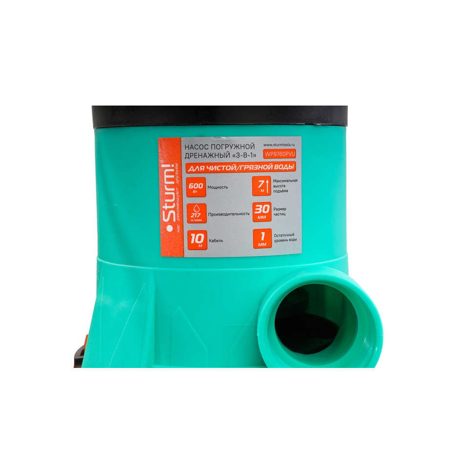 Характеристики Насос погружной дренажный Sturm WP9760PVU 3 в 1