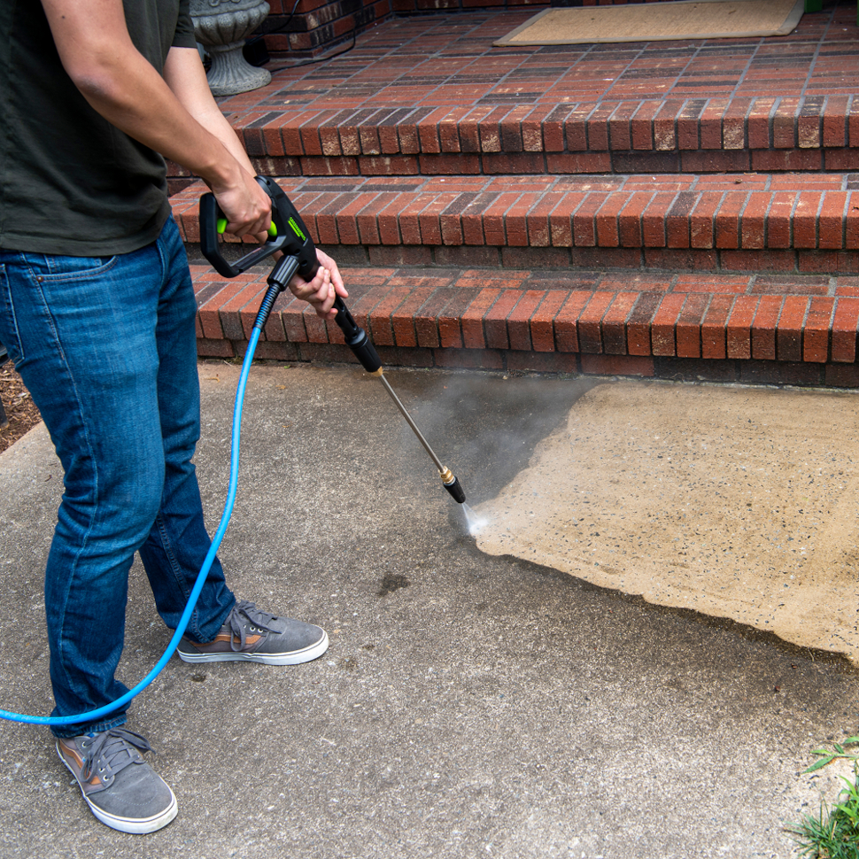 - Огромный радиус работы обеспечивает сверхпрочный армированный шланг высокого давления длиной 10 м и сетевой кабель 5 м.