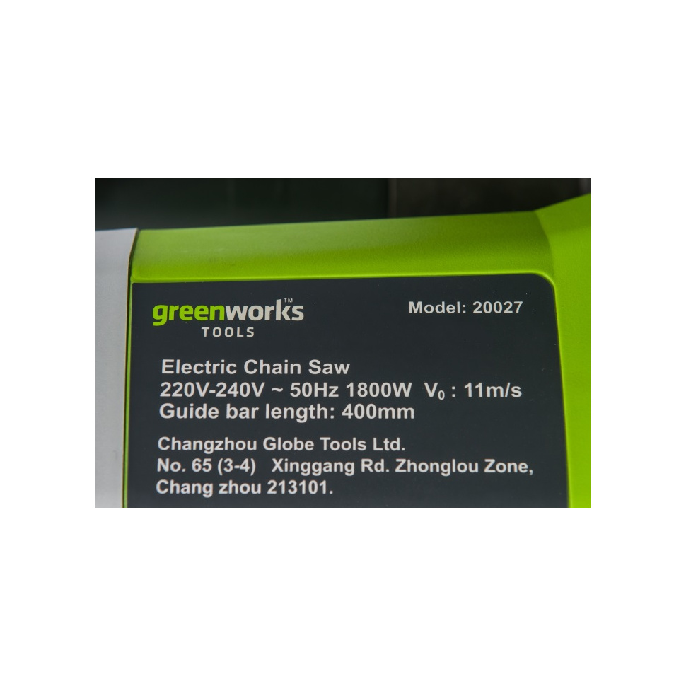 Характеристики Пила цепная электрическая Greenworks GCS1840 (20027)