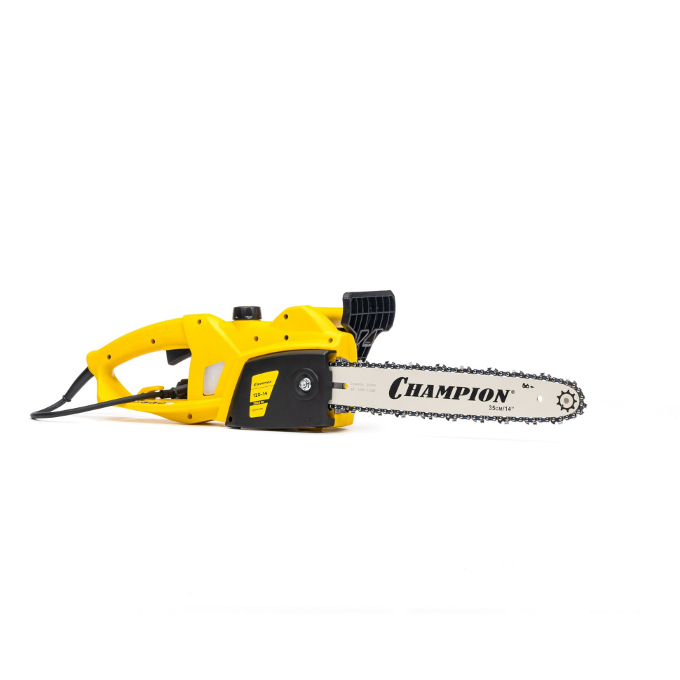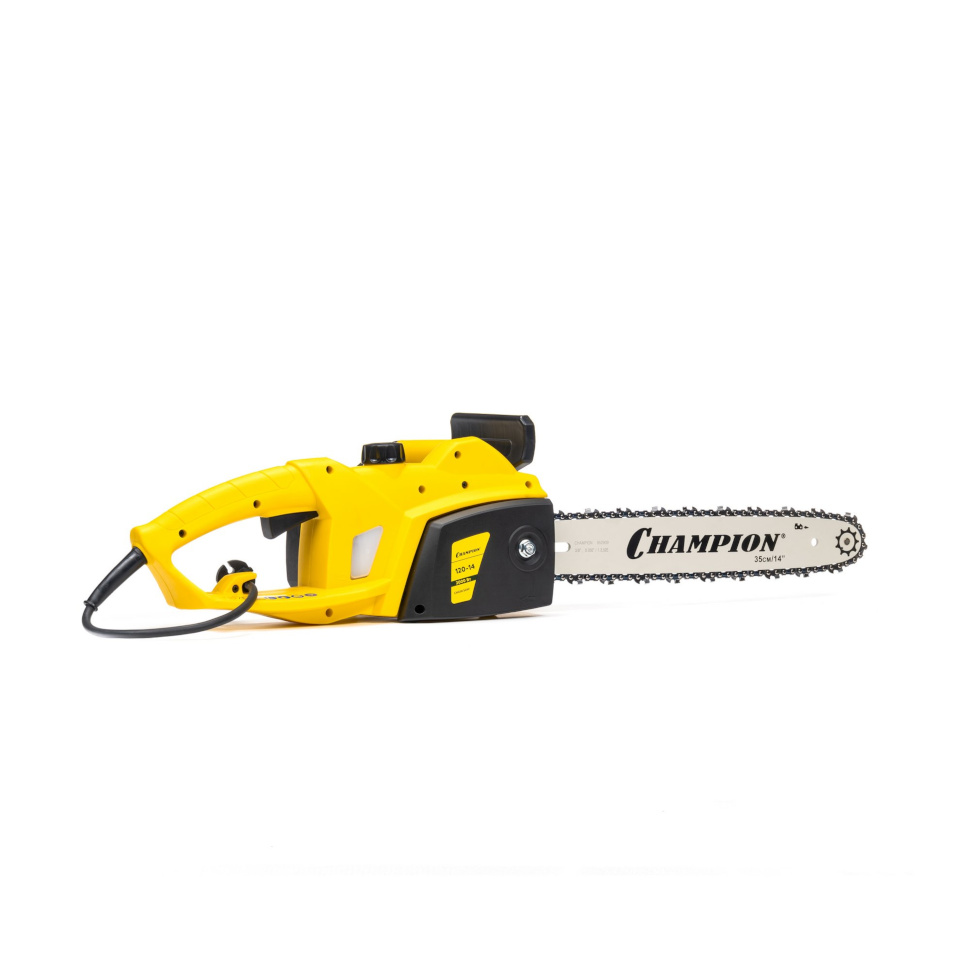 - Как и все электрические пилы, Чемпион 120-14 не выделяет вредных выхлопов и работает с низким уровнем шума. Это позволяет комфортно использовать ее в закрытых помещениях (мастерская, сарай) и в жилой зоне, не беспокоя соседей.