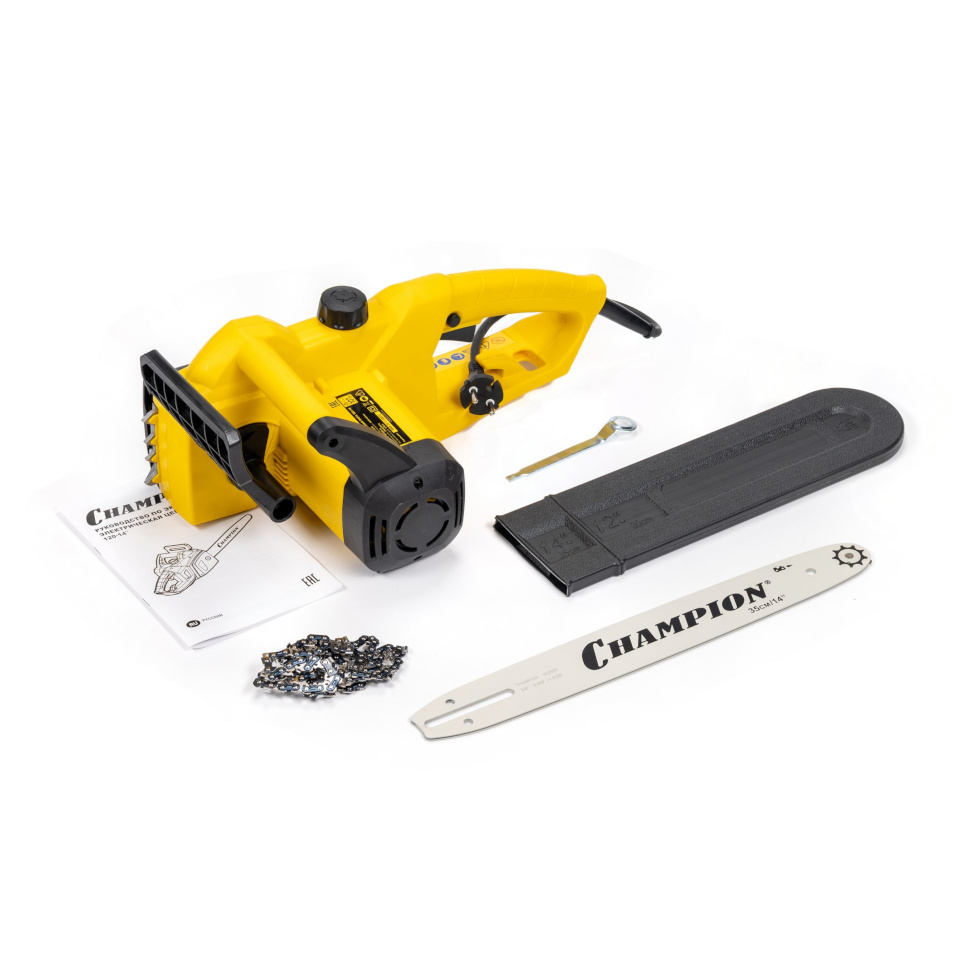 Электрическая цепная пила Чемпион 120-14 выделяется высокой производительностью для бытовых задач - мощный электродвигатель на 2 кВт обеспечивает уверенную и стабильную работу.