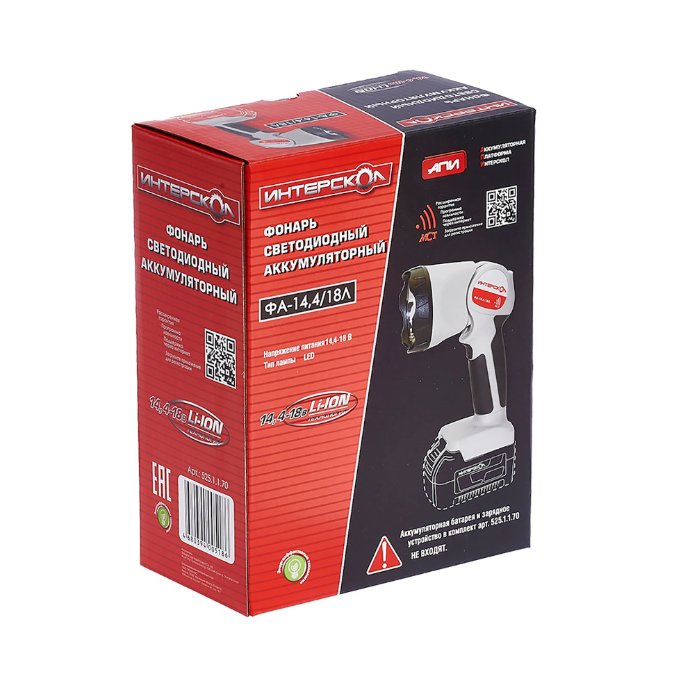 Аккумуляторный светодиодный фонарь Интерскол ФА-14,4/18Л (525.1.1.70). Коробка. |