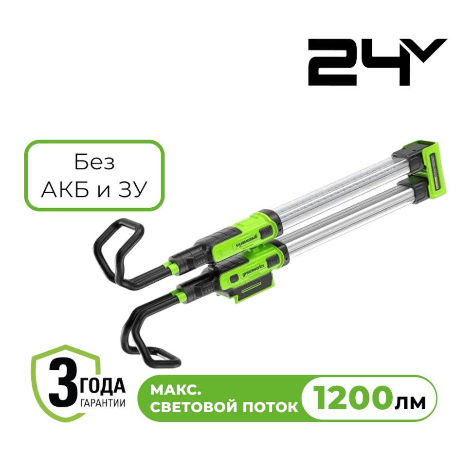 1. Универсальная совместимость - используйте одну батарею для всего арсенала инструментов Greenworks 24V. Прожектор поставляется без АКБ и ЗУ, что выгодно, если у вас уже есть аккумуляторы этой системы.