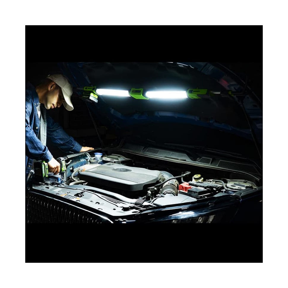 Подкапотный LED-прожектор аккумуляторный Гринворкс 3503607, 24V имеет три регулируемых режима освещения (400/800/1200 Лм), которые позволяют гибко подстраивать яркость под любую задачу, экономя заряд батареи.