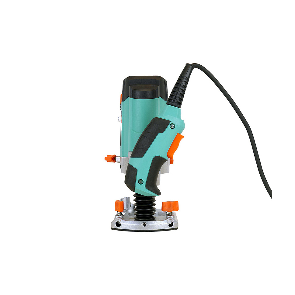 5. Безопасность и контроль - функция фиксации шпинделя одной кнопкой обеспечивает безопасную и быструю смену фрез, а эргономичные рукоятки гарантируют уверенный контроль над инструментом во время работы.