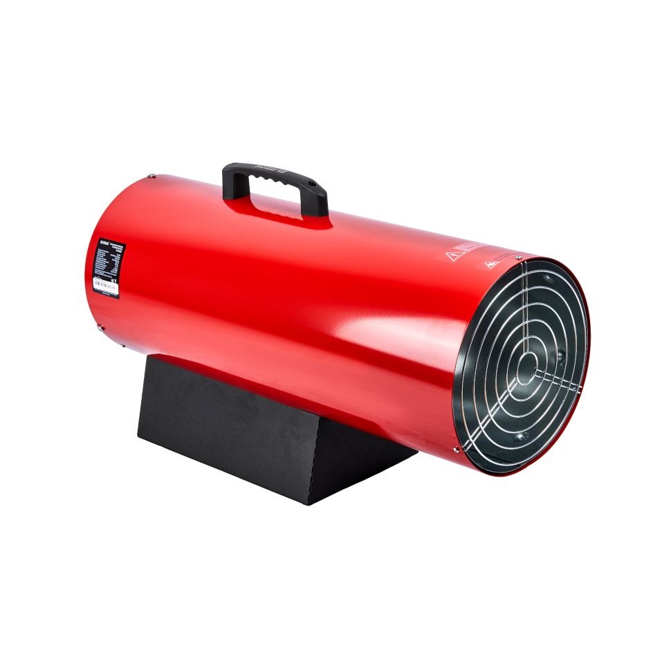 Газ сгорает в специальной камере, а мощный встроенный вентилятор, работающий от сети 230В, немедленно распределяет полученное тепло по всему пространству.