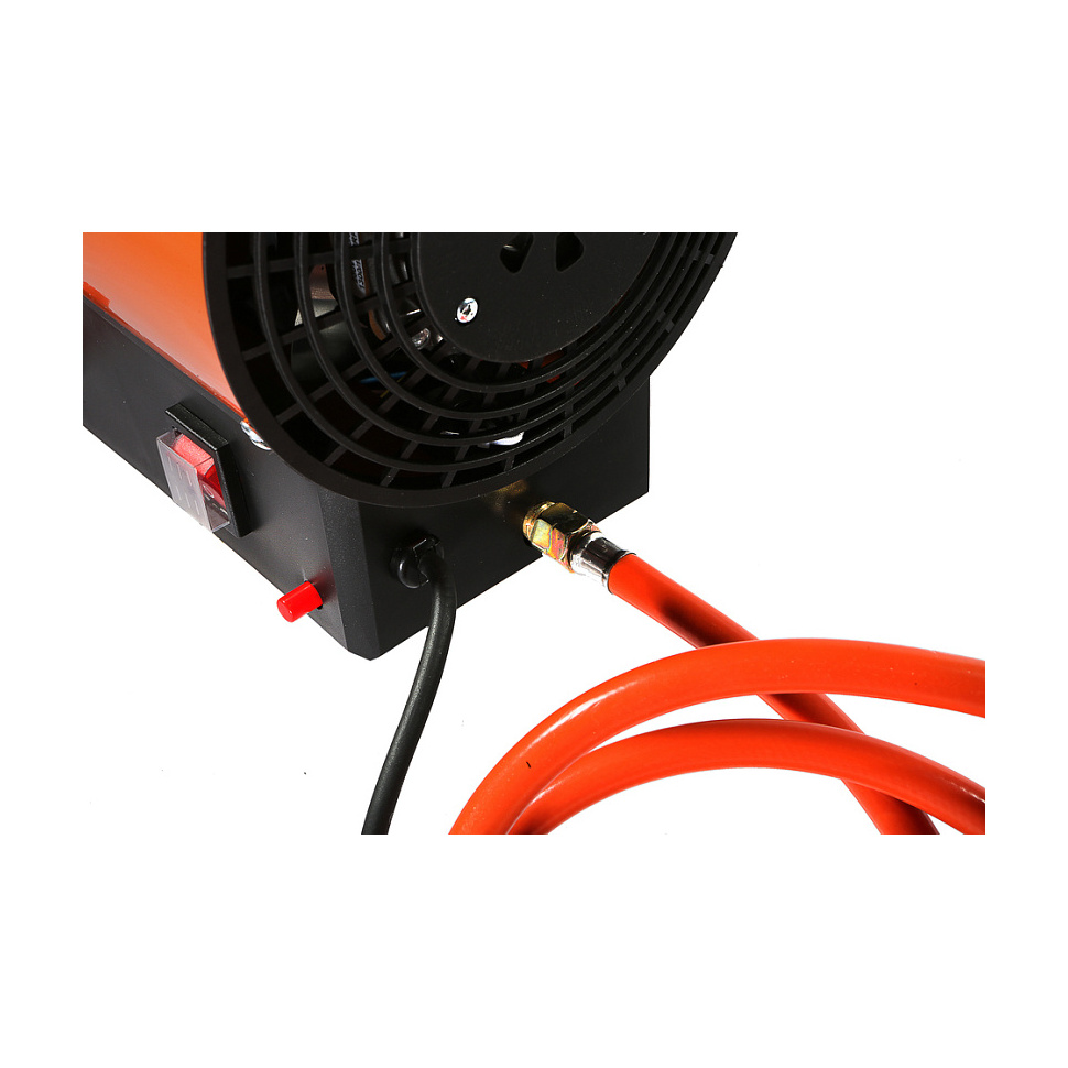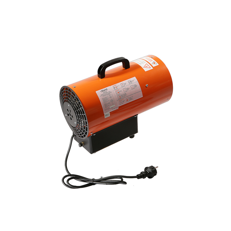 2. Безопасность в использовании - конструкция тепловой пушки продумана для обеспечения максимальной безопасности в использовании. Прочный металлический корпус защищает внутренние компоненты от повреждений, а широкая опорная площадка надежно предотвращает риск случайного опрокидывания.