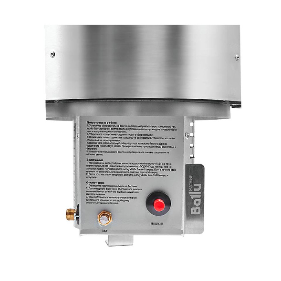 Газовый инфракрасный обогреватель Баллу BIGH-10 имеет пьезоэлектрический розжиг, а также оснащён такими системами безопасности, как: термопара, датчик опрокидывания, термостат.