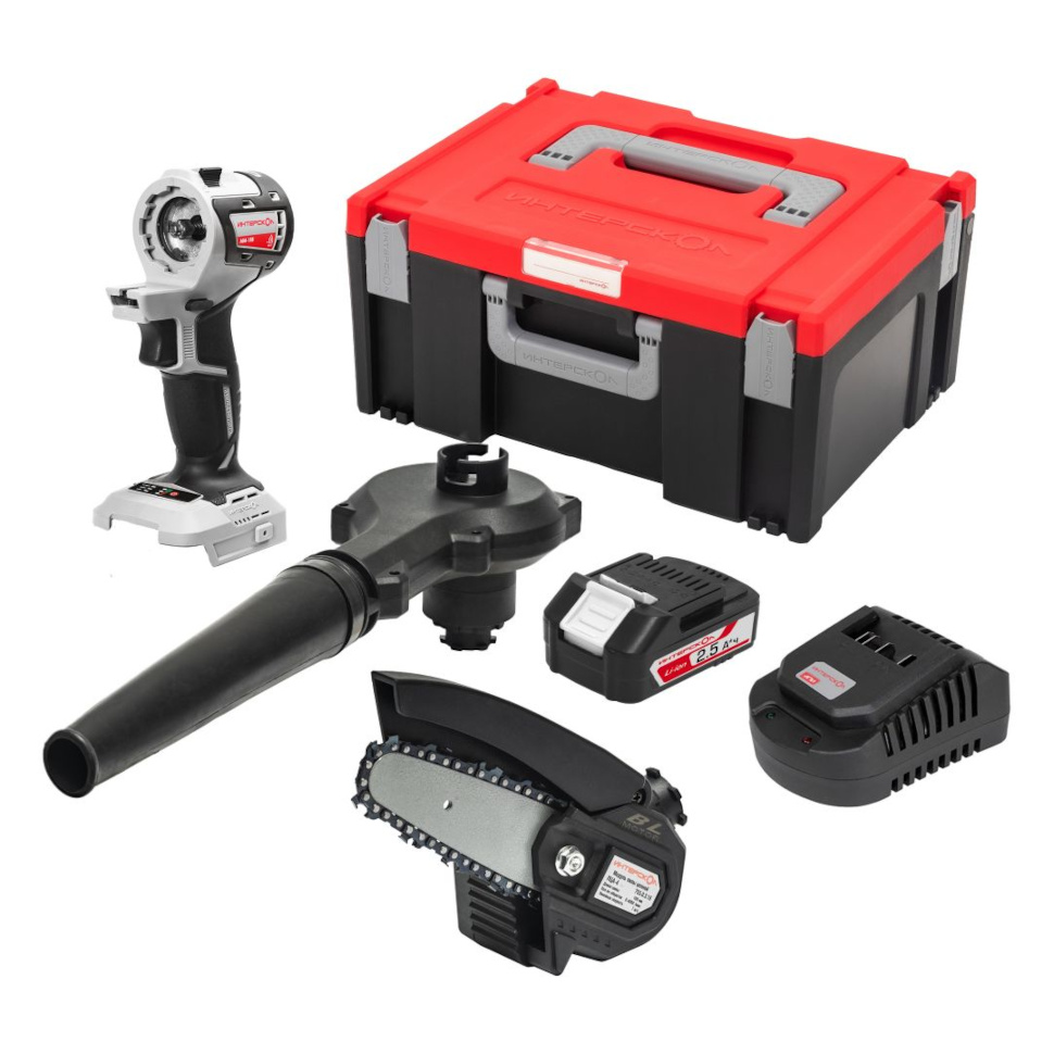 Характеристики Набор инструмента "Садовник" Интерскол МультиМАКС 755.2.3.46 (АКБ 2.5Ач и ЗУ, МультиБОКС 150)