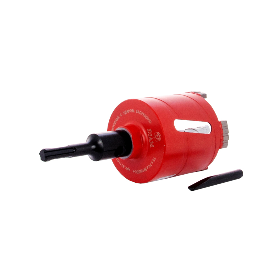 Алмазная сегментная коронка Диам Master Line диаметром 72 мм с переходником демонстрирует высокую надежность при сверлении кирпича, неармированного и слабоармированного бетона.
