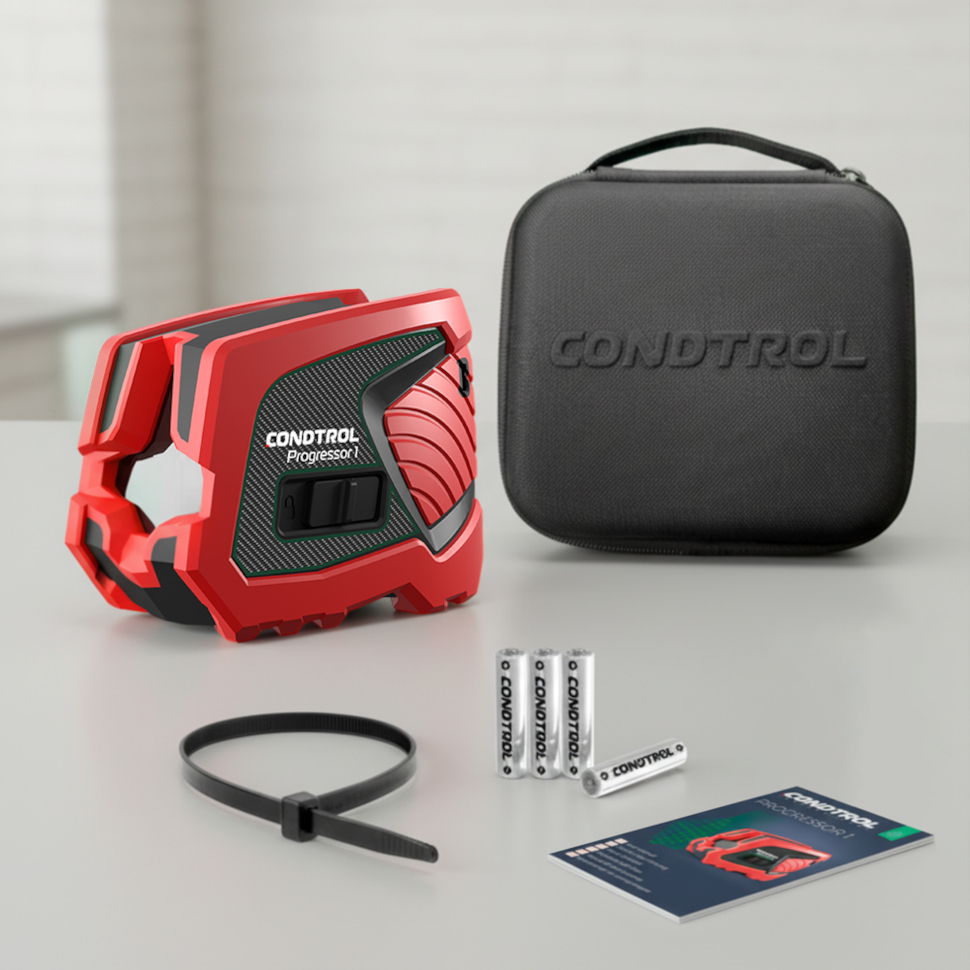 Нивелир лазерный Condtrol Progressor 1 (1-2-467). 4 батареи AA. Кабельная стяжка. Мягкий чехол. Руководство пользователя. Коробка. |